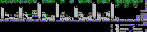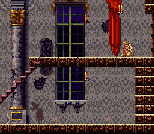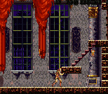 This is yet another remake of that same stage. The pillar alignment is almost identical to the first, and the platforms after the first five pillars are very alike. The statues from the Dracula's Curse are also present-- which at least shows some continuity, even though the game is a prequel to Super Castlevania IV. Zombies and axe knights are back, combined with bats, leopards and others.