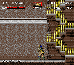 This isn't exactly a typical remake of that original level, since, technically, this game hit the arcades before Castlevania hit the NES. The structure of the stage has you climbing mostly upward, battling hunchbacks, axe knights, harpies and ghosts, rather than zombies and bats. The only real reminder is the familiar Vampire Killer music that can be heard stage-wide.