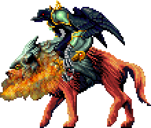 who rides a wolf and carries with it a flaming sword. Its method of attack