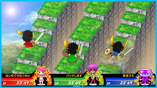In addition to its acclaimed console titles, Konami is the creator of many longrunning arcade series aimed at communication and bringing people together for unique and engaging multiplayer experiences. Among them are its memorable rhythm games (like Dance Dance Revolution, GuitarFreaks and DrumMania, some of which are covered on these pages) and its mini-game-focused Bishi Bashi series, which has produced multiple sequels over its 15-year history. Always sticking closely to its familiar formula, the Bishi Bashi games (using up to two machines) pit 1-6 players--each choosing as an avatar one of Konami's colorful mascot characters--against each other in all sorts of battle-based mini-games. (Note: The three Bishi Bashi compilations ported to the original PlayStation have been modified to support 8 players, but this doesn't affect the core gameplay.) Using the control mechanisms available to all players (either a four-button setup entailing red, yellow, green and blue buttons; or peripherals like a steering wheel or the recognizable dance pad), arcade-goers compete by interacting with the buttons/peripherals as explained prior to a mini-game's start.
