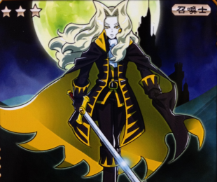 Naturally, no large-scope Konami title would be complete without a cameo appearance by one of its established mascot characters. Batting DH, this time, is Alucard, who has all but usurped the Belmonts as the series' go-to ambassador. In addition to summoning Alucard, you can evolve the half-breed hero, Pokemon-style, into more powerful forms (all images and information courtesy of JPCVFAN):