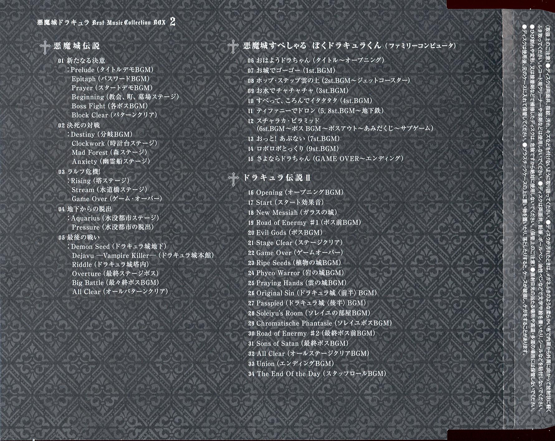 Due to the large sizes of the individual scans, I'll provide simple links in place of the direct posting of images. These scans are credited to Leon Scott Kennedy and vgmdb.net. To listen to Michiru Yamane's unique creations, click here.