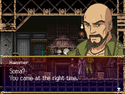 During his investigation, he was captured by the dark forces and imprisoned within Castlevania's study, where a terrifying Great Armor stood guard. It was Soma Cruz who in his mission cut through the evil-infested study and freed Hammer. The very grateful yet pushy Hammer wanted to make it up to Soma (who just wanted to get away from this "strange guy"), so he promised to head back to the castle entrance, where he would live out his dream and set up a "Weapons and Goods" shop. During each of Soma's visits, Hammer sold to the youth newer weapons and items, which greatly contributed to the mission. By the time it was over, Hammer had won over Soma and even made a few other friends in the form of Mina, Yoko, Julius and Arikado. Over the course of the next year, Hammer retired from the military and qualified as an actual licensed merchant. The aimless and irresponsible Hammer also became an information broker thanks to his shady business connections. It was through these channels that Hammer was able to relay to Soma Cruz the location of Celia Fortner and her cult's hideout (about which Arikado and the Church volunteers didn't want Soma to know) in the snowy mountain regions of Europe. When Soma arrived at the entrance, Hammer, who was tailing him, made known his presence. Soma was upset that Hammer took it upon himself to get further involved, but the rough and resolute merchant convinced the lad to let him stick around so that he could open up a shop and again assist in the mission. Though he would surely provide a helping hand, Hammer had an ulterior motive: He thought for sure that Yoko Belnades, on whom he had a secret crush, would also show up. He was saddened by her absence. However, nothing made Hammer as happy as to see Soma Cruz escort Yoko to an abandoned building right across the way from his very shop. He had it made: He could go about his business and keep an eye on Yoko. During Soma's visits to his shop, he continued to use the annoyed youth as middle man to find out about Yoko's true feelings. As of Dawn of Sorrow's conclusion, there's no word as to whether or not a relationship was forged. Regardless of his selfish motives, he again came through for his friend, and he, too, was there at mission's end to comfort the victorious hero. |