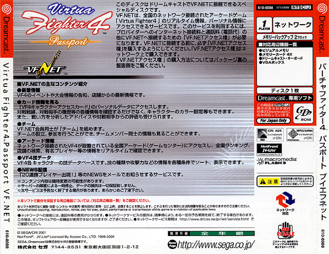 Virtua Fighter 4 Passport (Jap) (Back) (CD)