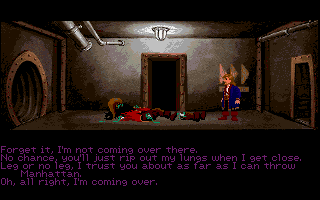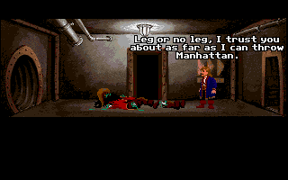 "Leg or no leg, I trust you about as far I can throw Manhattan."