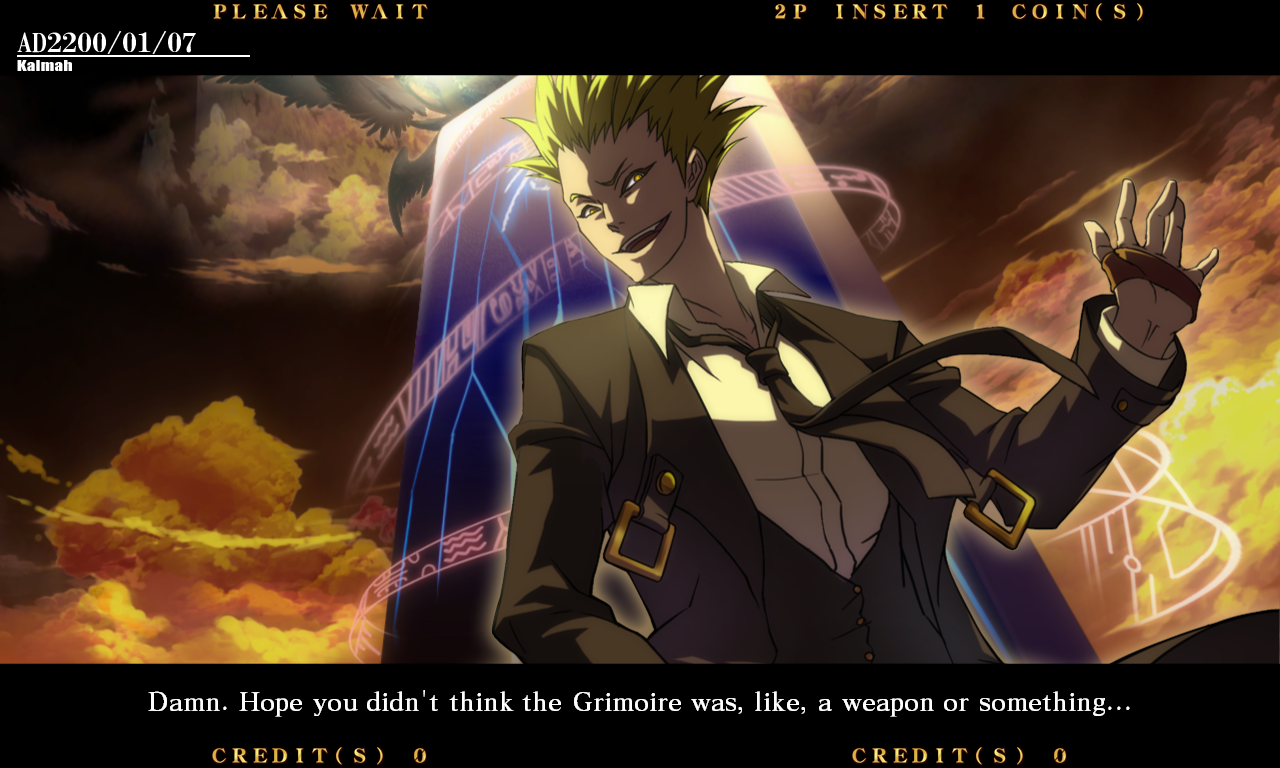 | Home | BackTweet | - Arcade Mode - | Score Attack | | Ragna The Bloodedge | Jin Kisaragi | Rachel Alucard | - Carl Clover - | Arakune | Bang Shishigami | | Haku-Men | Tsubaki Yayoi | Noel Vermillion | Λ-11- | Iron Tager | Litchi Faye Ling | Taokaka | Hazama |