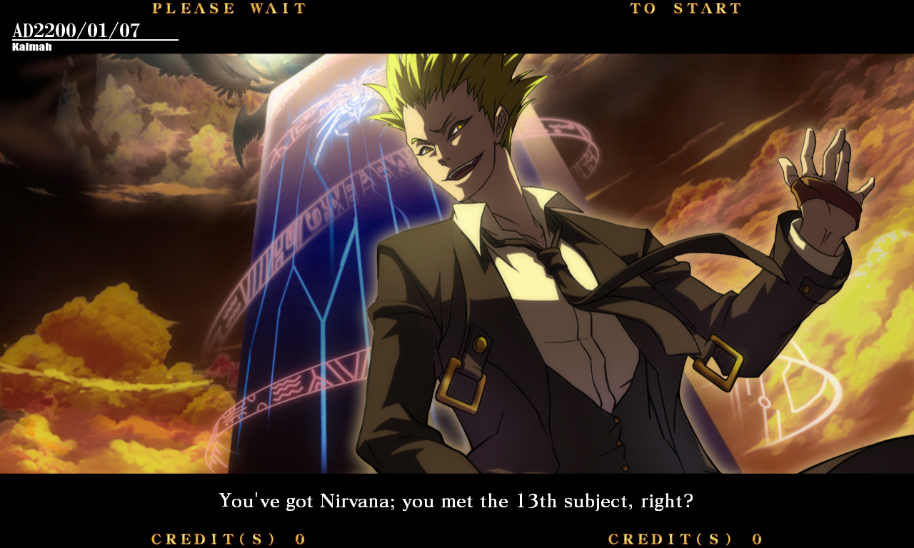 | Ragna The Bloodedge | Jin Kisaragi | Rachel Alucard | - Carl Clover - | Arakune | Bang Shishigami | | Haku-Men | Tsubaki Yayoi | Noel Vermillion | Λ-11- | Iron Tager | Litchi Faye Ling | Taokaka | Hazama | | - Arcade Mode - | Score Attack | |