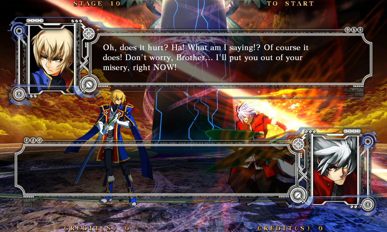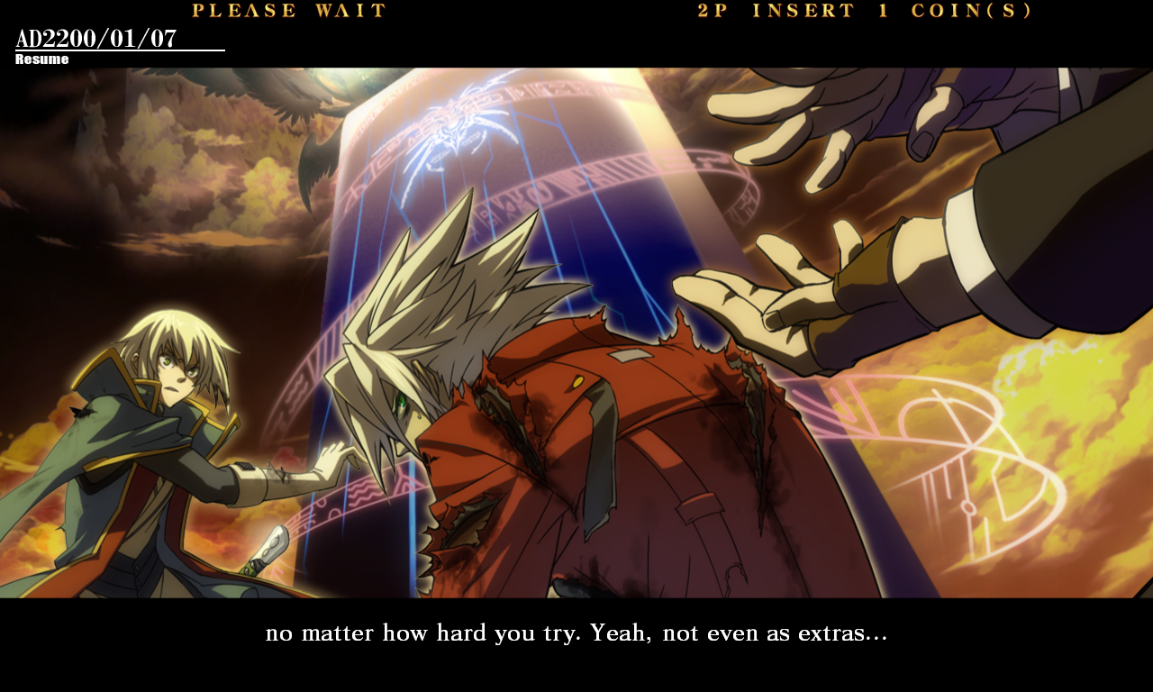 | Home | BackTweet | - Arcade Mode - | Score Attack | | Ragna The Bloodedge | - Jin Kisaragi - | Rachel Alucard | Carl Clover | Arakune | Bang Shishigami | | Haku-Men | Tsubaki Yayoi | Noel Vermillion | Λ-11- | Iron Tager | Litchi Faye Ling | Taokaka | Hazama |