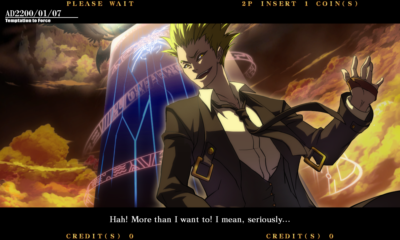 | Ragna The Bloodedge | Jin Kisaragi | Rachel Alucard | Carl Clover | Arakune | Bang Shishigami | | Haku-Men | Tsubaki Yayoi | Noel Vermillion | Λ-11- | Iron Tager | - Litchi Faye Ling - | Taokaka | Hazama | | - Arcade Mode - | Score Attack | |