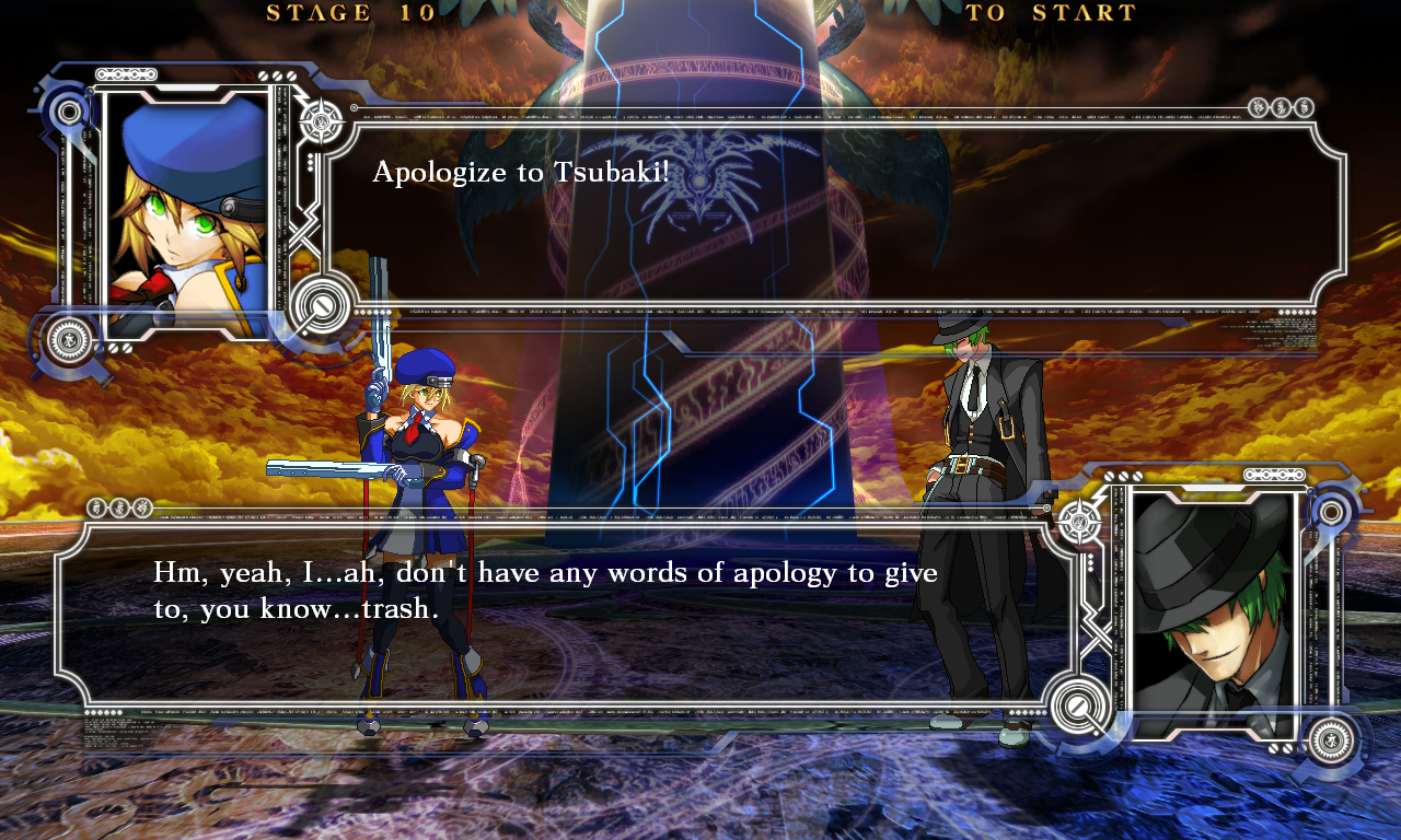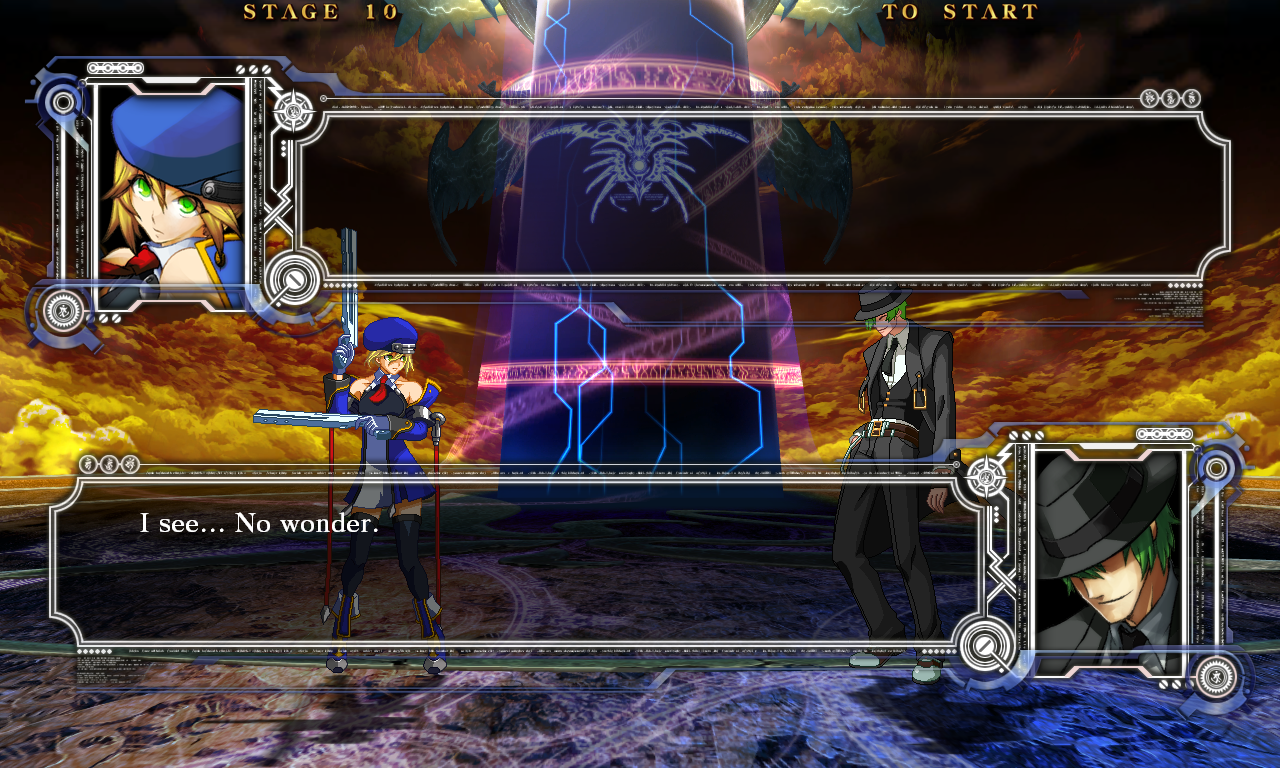 | Home | BackTweet | - Arcade Mode - | Score Attack | | Ragna The Bloodedge | Jin Kisaragi | Rachel Alucard | Carl Clover | Arakune | Bang Shishigami | | Haku-Men | Tsubaki Yayoi | - Noel Vermillion - | Λ-11- | Iron Tager | Litchi Faye Ling | Taokaka | Hazama |