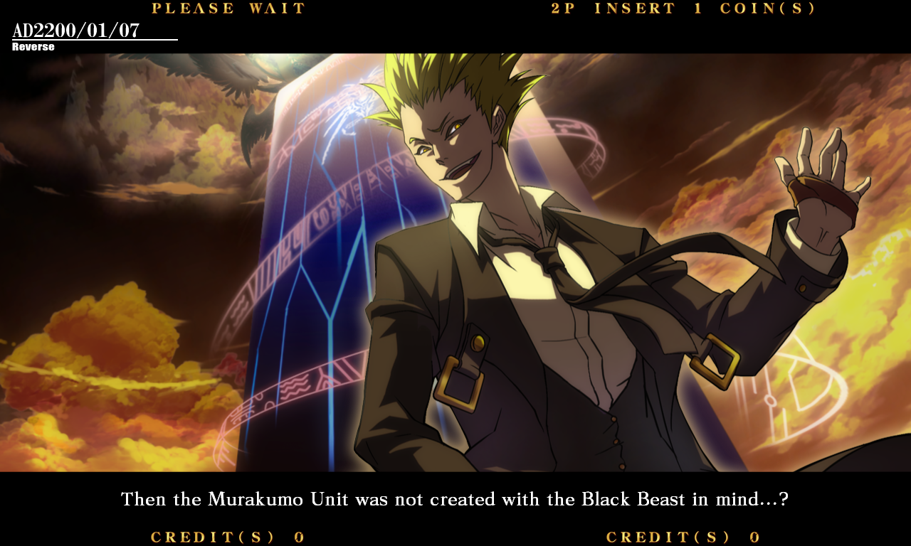 | Ragna The Bloodedge | Jin Kisaragi | - Rachel Alucard - | Carl Clover | Arakune | Bang Shishigami | | Haku-Men | Tsubaki Yayoi | Noel Vermillion | Λ-11- | Iron Tager | Litchi Faye Ling | Taokaka | Hazama | | - Arcade Mode - | Score Attack | |