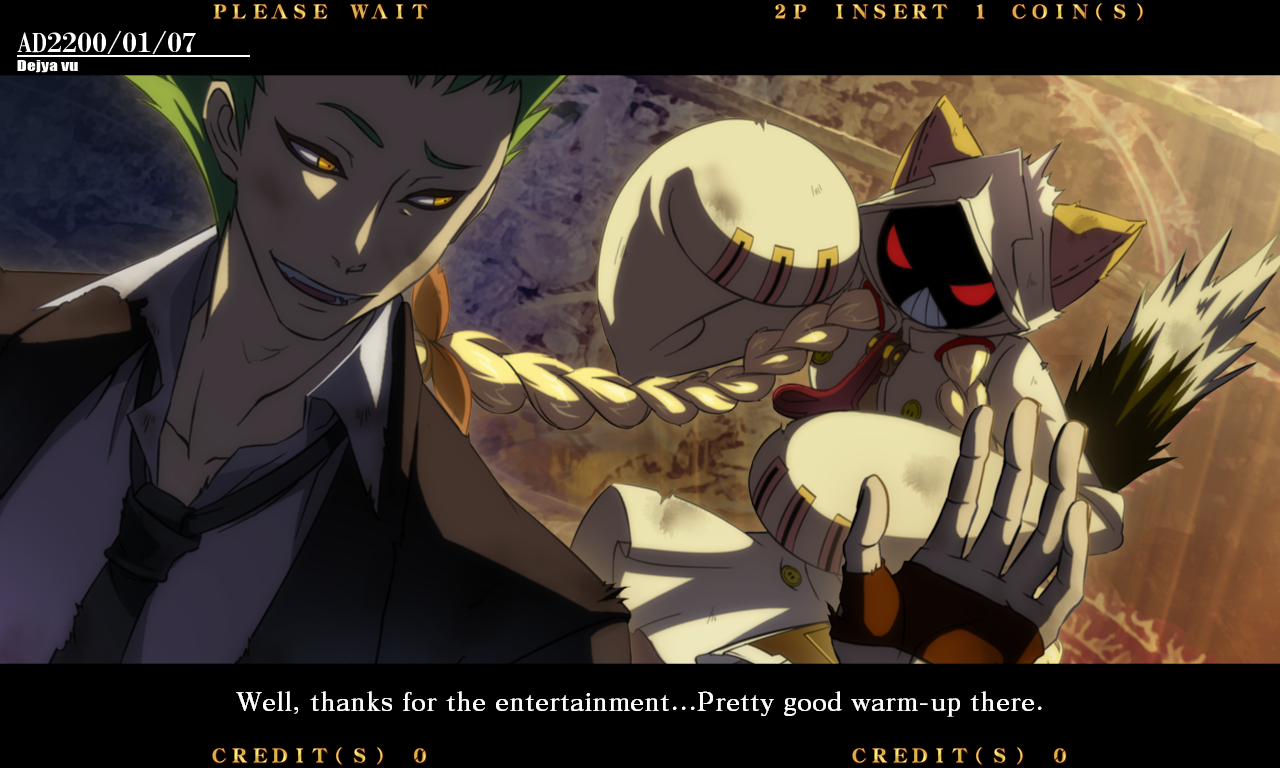 | Ragna The Bloodedge | Jin Kisaragi | Rachel Alucard | Carl Clover | Arakune | Bang Shishigami | | Haku-Men | Tsubaki Yayoi | Noel Vermillion | Λ-11- | Iron Tager | Litchi Faye Ling | - Taokaka - | Hazama | | - Arcade Mode - | Score Attack | |