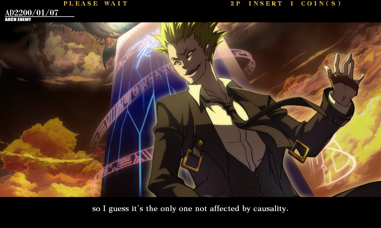 | Ragna The Bloodedge | Jin Kisaragi | Rachel Alucard | Carl Clover | Arakune | Bang Shishigami | | Haku-Men | - Tsubaki Yayoi - | Noel Vermillion | Λ-11- | Iron Tager | Litchi Faye Ling | Taokaka | Hazama | | - Arcade Mode - | Score Attack | |