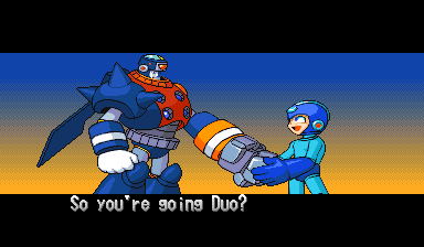 | Mega Man, Proto Man Team | - Mega Man, Duo Team - | Proto Man, Bass Team | | Bass, Mega Man Team | Bass, Duo Team | Duo, Proto Man Team | | Solo Play | - Team Play - | |