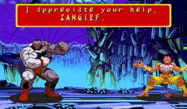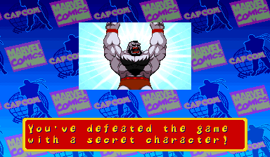 | - Non-Japanese Version - | Japanese Version | | Ryu | Captain America | U.S.Agent | Ken | Wolverine | Chun-Li | Spider-Man | Armored Spider-Man | Dhalsim | Zangief | - Mech-Zangief - | | Sakura | Sunburned Sakura | Dan | Cyclops | Hulk | Shadow | Omega Red | Shuma-Gorath | Blackheart | Mephisto | M.Bison | Akuma | Norimaro (Japanese Version) | |