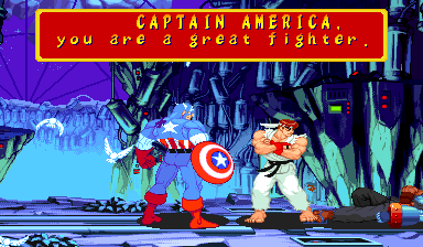 | Home | BackTweet | Ryu | - Captain America - | U.S.Agent | Ken | Wolverine | Chun-Li | Spider-Man | Armored Spider-Man | Dhalsim | Zangief | Mech-Zangief | | Sakura | Sunburned Sakura | Dan | Cyclops | Hulk | Shadow | Omega Red | Shuma-Gorath | Blackheart | Mephisto | M.Bison | Akuma | Norimaro (Japanese Version) |