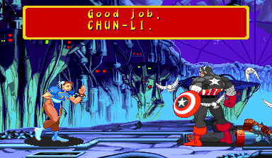 | Home | BackTweet | Ryu | Captain America | U.S.Agent | Ken | Wolverine | - Chun-Li - | Spider-Man | Armored Spider-Man | Dhalsim | Zangief | Mech-Zangief | | Sakura | Sunburned Sakura | Dan | Cyclops | Hulk | Shadow | Omega Red | Shuma-Gorath | Blackheart | Mephisto | M.Bison | Akuma | Norimaro (Japanese Version) |