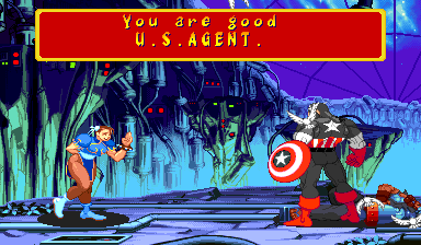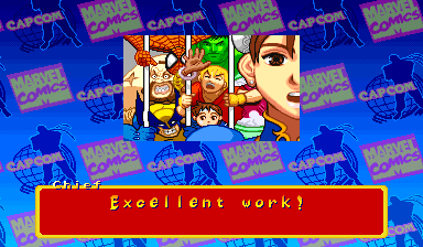 | Ryu | Captain America | U.S.Agent | Ken | Wolverine | - Chun-Li - | Spider-Man | Armored Spider-Man | Dhalsim | Zangief | Mech-Zangief | | Sakura | Sunburned Sakura | Dan | Cyclops | Hulk | Shadow | Omega Red | Shuma-Gorath | Blackheart | Mephisto | M.Bison | Akuma | Norimaro (Japanese Version) | |