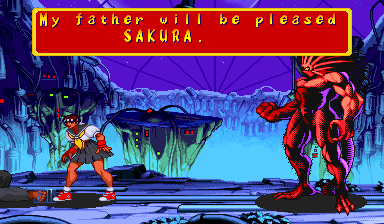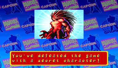 | Ryu | Captain America | U.S.Agent | Ken | Wolverine | Chun-Li | Spider-Man | Armored Spider-Man | Dhalsim | Zangief | Mech-Zangief | | Sakura | Sunburned Sakura | Dan | Cyclops | Hulk | Shadow | Omega Red | Shuma-Gorath | Blackheart | - Mephisto - | M.Bison | Akuma | Norimaro (Japanese Version) | |