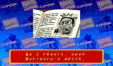 | Home | BackTweet | Ryu | Captain America | U.S.Agent | Ken | Wolverine | Chun-Li | Spider-Man | Armored Spider-Man | Dhalsim | Zangief | Mech-Zangief | | Sakura | Sunburned Sakura | Dan | Cyclops | Hulk | Shadow | Omega Red | Shuma-Gorath | Blackheart | Mephisto | M.Bison | Akuma | - Norimaro (Japanese Version) - |