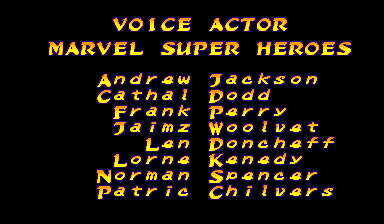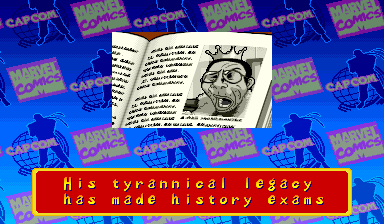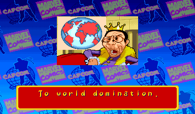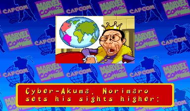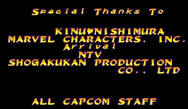 | Ryu | Captain America | U.S.Agent | Ken | Wolverine | Chun-Li | Spider-Man | Armored Spider-Man | Dhalsim | Zangief | Mech-Zangief | | Sakura | Sunburned Sakura | Dan | Cyclops | Hulk | Shadow | Omega Red | Shuma-Gorath | Blackheart | Mephisto | M.Bison | Akuma | - Norimaro (Japanese Version) - | |