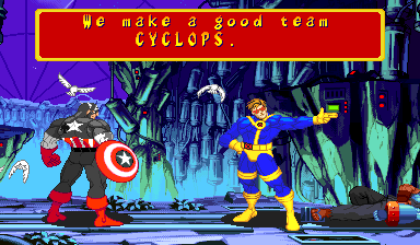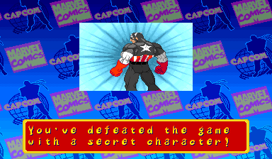 | Ryu | Captain America | - U.S.Agent - | Ken | Wolverine | Chun-Li | Spider-Man | Armored Spider-Man | Dhalsim | Zangief | Mech-Zangief | | Sakura | Sunburned Sakura | Dan | Cyclops | Hulk | Shadow | Omega Red | Shuma-Gorath | Blackheart | Mephisto | M.Bison | Akuma | Norimaro (Japanese Version) | |