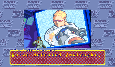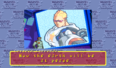 | Ryu | Captain America | Mega Man | Roll | Chun Li | Jin | - Captain Commando - | Strider | Zangief | Hulk | Orange Hulk | Wolverine | | Gambit | Spider-Man | War Machine | Hyper Armor War Machine | Shadow Lady | Venom | High Speed Venom | Lilith | Morrigan | |