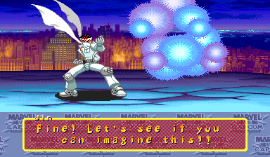 | Home | BackTweet | Ryu | Captain America | Mega Man | Roll | Chun Li | - Jin - | Captain Commando | Strider | Zangief | Hulk | Orange Hulk | Wolverine | | Gambit | Spider-Man | War Machine | Hyper Armor War Machine | Shadow Lady | Venom | High Speed Venom | Lilith | Morrigan |