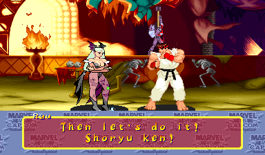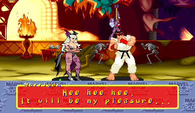 | Home | BackTweet | Ryu | Captain America | Mega Man | Roll | Chun Li | Jin | Captain Commando | Strider | Zangief | Hulk | Orange Hulk | Wolverine | | Gambit | Spider-Man | War Machine | Hyper Armor War Machine | Shadow Lady | Venom | High Speed Venom | Lilith | - Morrigan - |