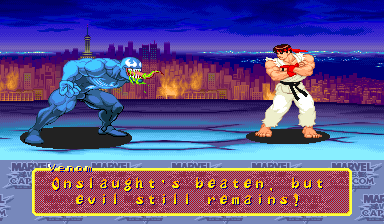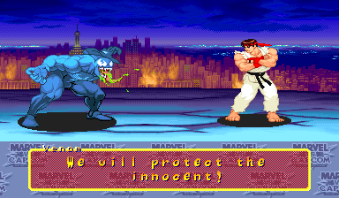 | Home | BackTweet | Ryu | Captain America | Mega Man | Roll | Chun Li | Jin | Captain Commando | Strider | Zangief | Hulk | Orange Hulk | Wolverine | | Gambit | Spider-Man | War Machine | Hyper Armor War Machine | Shadow Lady | - Venom - | High Speed Venom | Lilith | Morrigan |