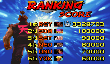 | Alex | Ryu | Ken | Ibuki | Yun | Yang | Necro | Oro | | Elena | Dudley | Sean | Urien | Hugo | - Akuma - | | - Standard Ending - | Special Ending | |