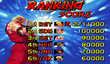 | Alex | Ryu | - Ken - | Ibuki | Yun | Yang | Necro | Oro | | Elena | Dudley | Sean | Urien | Hugo | Akuma | | - Standard Ending - | Special Ending | |