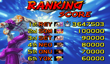 | Alex | Ryu | Ken | Ibuki | Yun | Yang | - Necro - | Oro | | Elena | Dudley | Sean | Urien | Hugo | Akuma | | - Standard Ending - | Special Ending | |