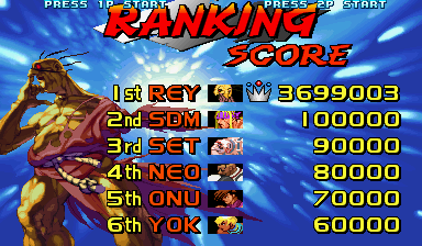 | Alex | Ryu | Ken | Ibuki | Yun | Yang | Necro | - Oro - | | Elena | Dudley | Sean | Urien | Hugo | Akuma | | - Standard Ending - | Special Ending | |