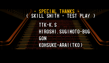| Alex | Ryu | Ken | Ibuki | Yun | Yang | Necro | Oro | | Elena | Dudley | Sean | - Urien - | Hugo | Akuma | | - Standard Ending - | Special Ending | |