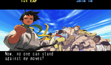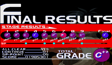 | Remy | Ryu | Ken | Chun-Li | Sean | Ibuki | Yun | Yang | Alex | - Makoto - | | Necro | Oro | Elena | Dudley | Q | Urien | Twelve | Hugo | Akuma | |