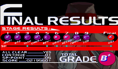 | Remy | Ryu | Ken | Chun-Li | Sean | Ibuki | Yun | Yang | Alex | Makoto | | Necro | Oro | Elena | Dudley | - Q - | Urien | Twelve | Hugo | Akuma | |