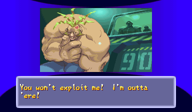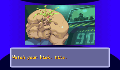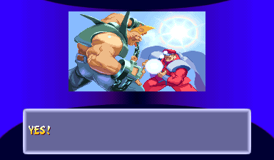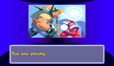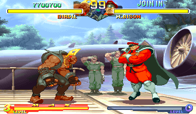 | Ryu | Ken | Charlie | Chun Li | Sakura | Zangief | Rose | Dhalsim | Gen | | Sodom | Dan | Adon | - Birdie - | Guy | Rolento | Sagat | M.Bison | Akuma | |