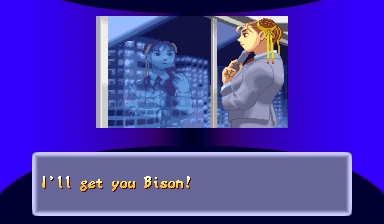 | Ryu | Ken | Charlie | - Chun Li - | Sakura | Zangief | Rose | Dhalsim | Gen | | Sodom | Dan | Adon | Birdie | Guy | Rolento | Sagat | M.Bison | Akuma | |