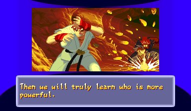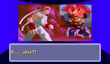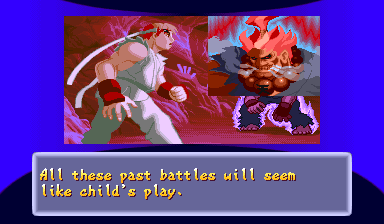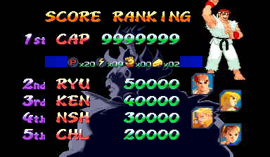 | - Ryu - | Ken | Charlie | Chun Li | Sakura | Zangief | Rose | Dhalsim | Gen | | Sodom | Dan | Adon | Birdie | Guy | Rolento | Sagat | M.Bison | Akuma | |