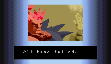 | Ryu | Ken | Chun Li | Charlie | Guy | Birdie | Sodom | Adon | | Rose | Sagat | Dan | M. Bison | - Akuma - | |