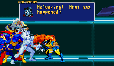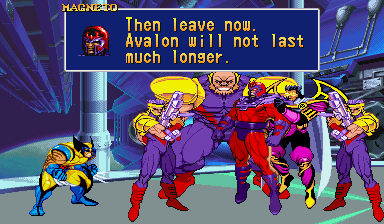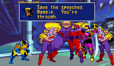 | - Wolverine - | Cyclops | Ice Man | Colossus | Psylocke | Storm | | Silver Samurai | Spiral | Omega Red | Sentinel | Akuma | |