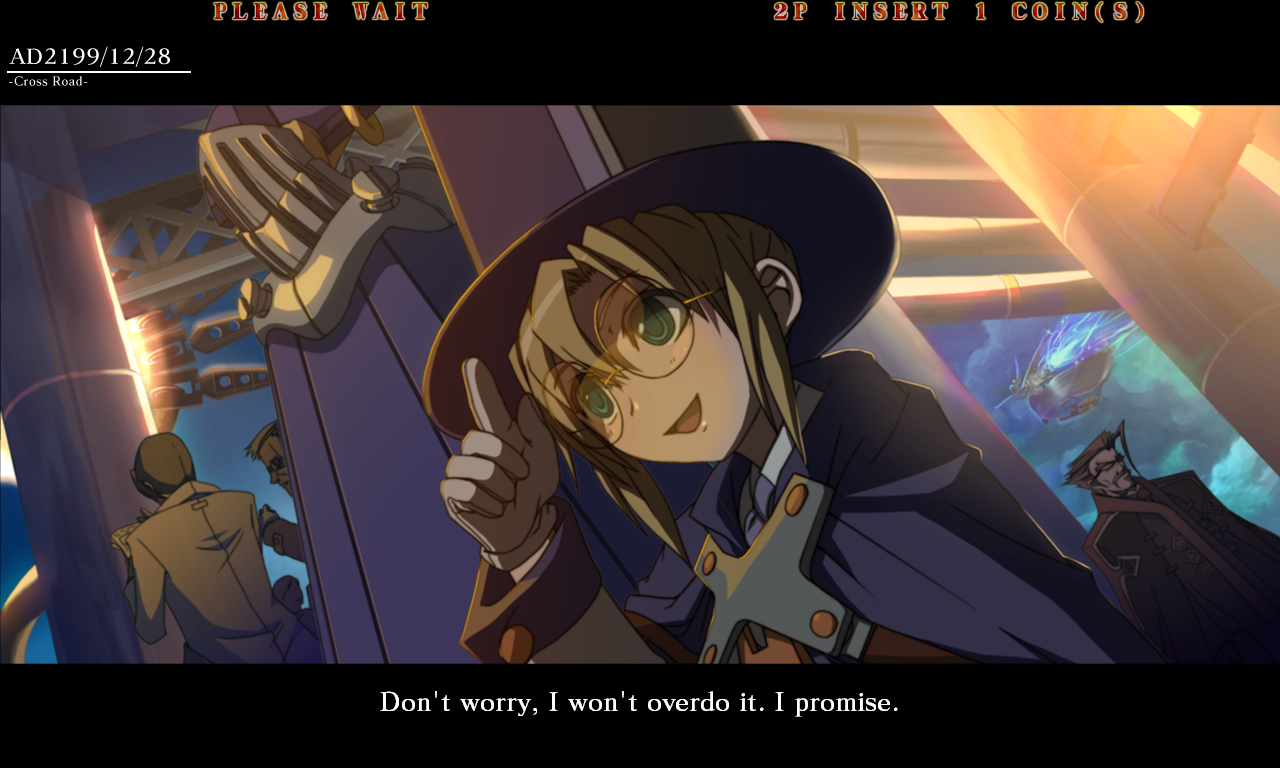 | Ragna The Bloodedge | Jin Kisaragi | Rachel Alucard | - Carl Clover - | Arakune | Iron Tager | | Bang Shishigami | Litchi Faye Ling | Taokaka | Noel Vermillion | Haku-Men | ν-13- | | - Arcade Mode - | Score Attack | |