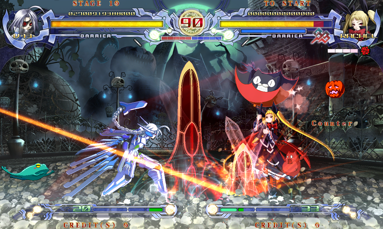| Ragna The Bloodedge | Jin Kisaragi | Rachel Alucard | Carl Clover | Arakune | Iron Tager | | Bang Shishigami | Litchi Faye Ling | Taokaka | Noel Vermillion | Haku-Men | - ν-13- - | | - Arcade Mode - | Score Attack | |