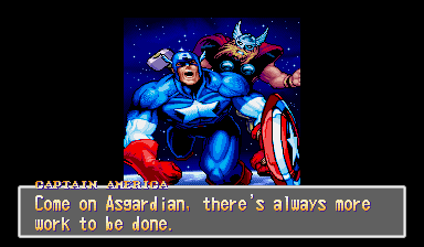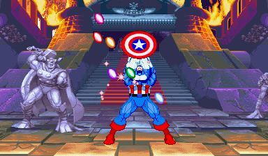 | Spiderman | - Captain America - | Wolverine | Hulk | Iron Man | | Psylocke | Shuma-Gorath | Blackheart | Juggernaut | Magneto | |