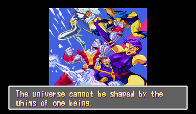 | Spiderman | Captain America | Wolverine | Hulk | Iron Man | | - Psylocke - | Shuma-Gorath | Blackheart | Juggernaut | Magneto | |