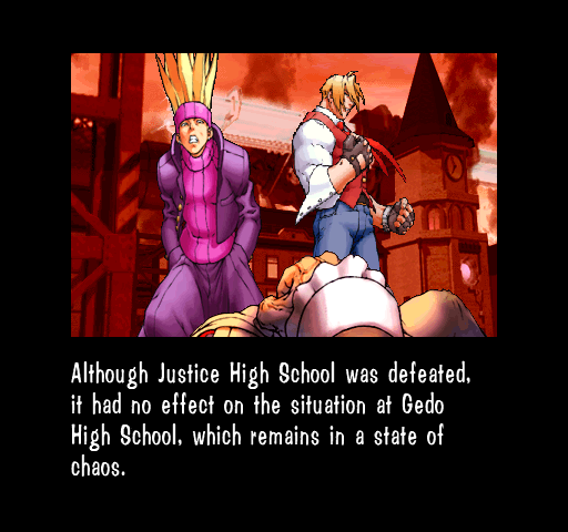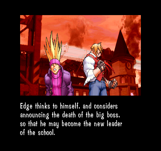 | - Bad Ending - | Good Ending | | Batsu | Hinata | Kyosuke | Akira | Pure Rider Akira | Gan | Natsu | - Edge - | Roy | | Sakura | Boman | Roberto | Kyoko | Tiffany | Hideo | Syoma | Raizo | Hyo | |