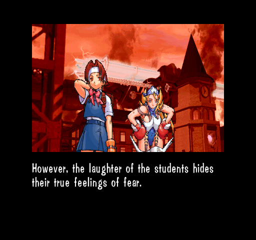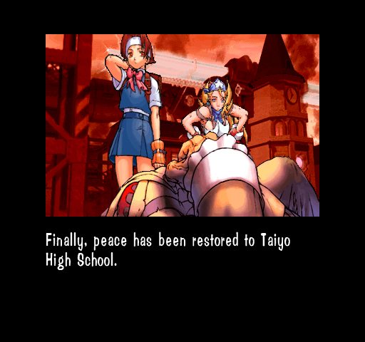 | - Bad Ending - | Good Ending | | Batsu | - Hinata - | Kyosuke | Akira | Pure Rider Akira | Gan | Natsu | Edge | Roy | | Sakura | Boman | Roberto | Kyoko | Tiffany | Hideo | Syoma | Raizo | Hyo | |