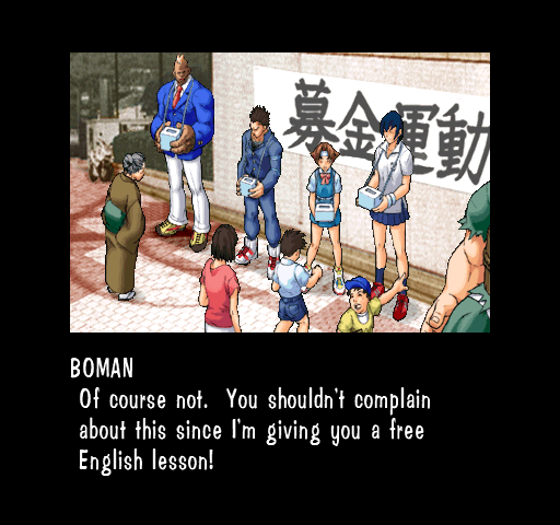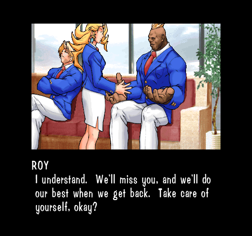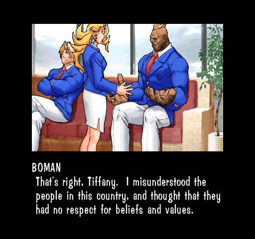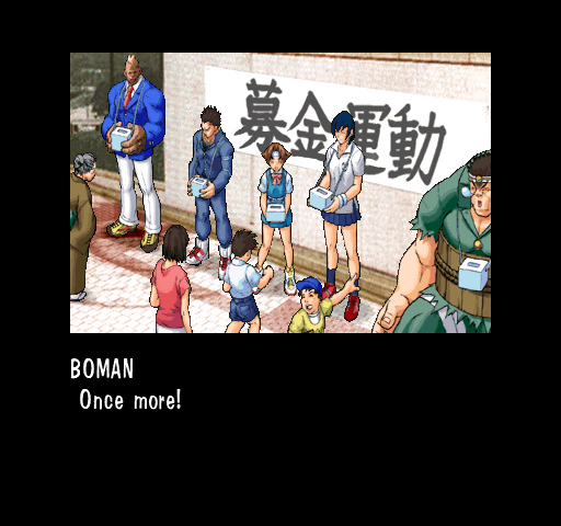 | Bad Ending | - Good Ending - | | Batsu | Hinata | Kyosuke | Akira | Pure Rider Akira | Gan | Natsu | Edge | Roy | | Sakura | - Boman - | Roberto | Kyoko | Tiffany | Hideo | Syoma | Raizo | Hyo | |