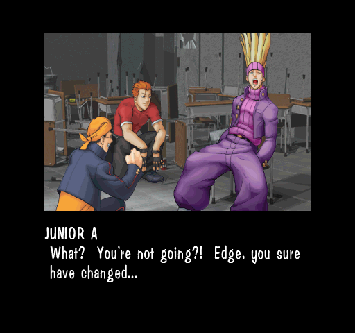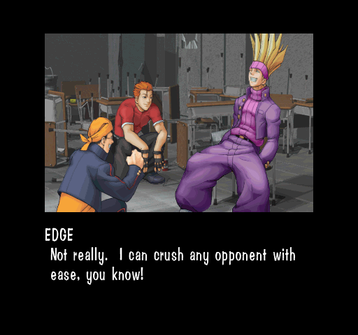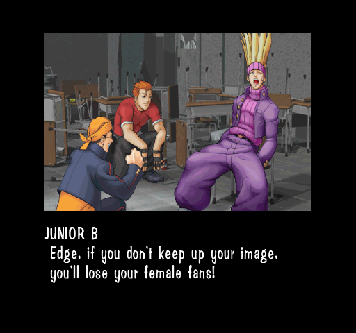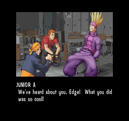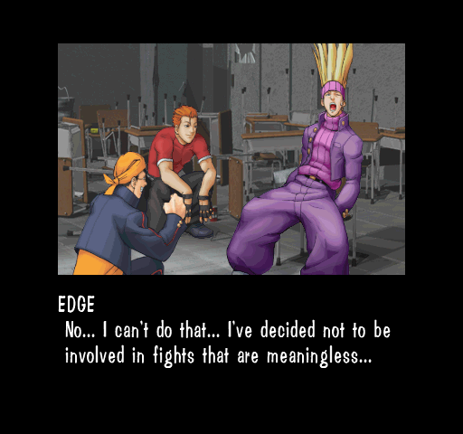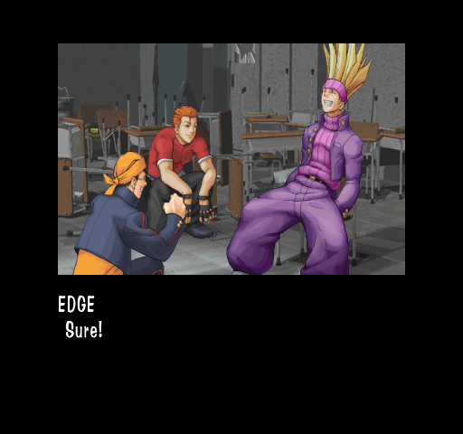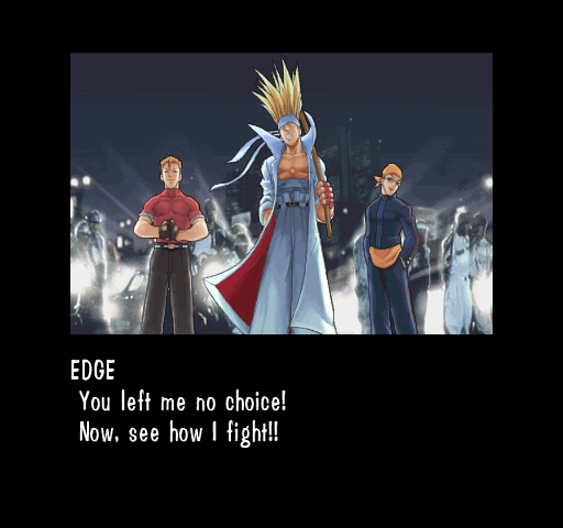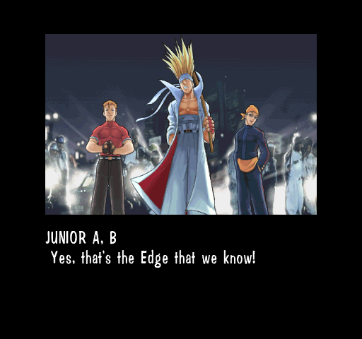 | Bad Ending | - Good Ending - | | Batsu | Hinata | Kyosuke | Akira | Pure Rider Akira | Gan | Natsu | - Edge - | Roy | | Sakura | Boman | Roberto | Kyoko | Tiffany | Hideo | Syoma | Raizo | Hyo | |